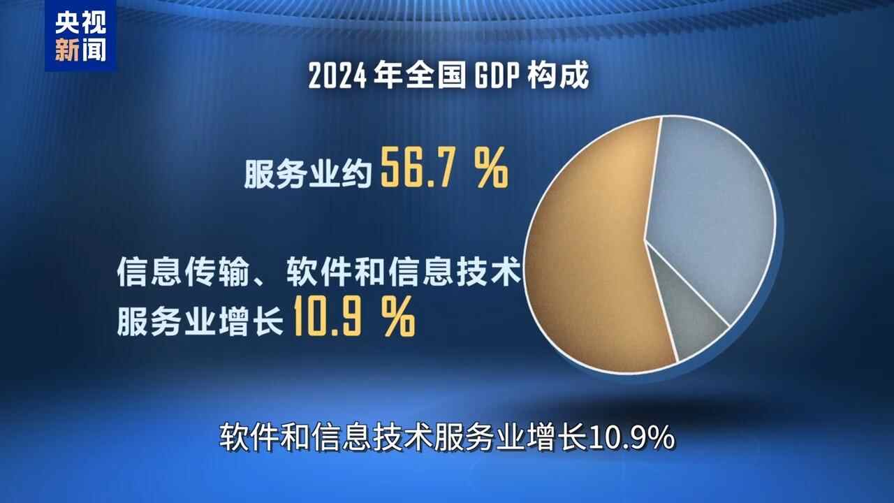 新机遇。服务业在GDP中的比重达到约56.7%,信息传输、软件和信息技术服务业增长10.9%,领跑服务业。服务业蓬勃发展带来更多新需求、新岗位,光是2024年发布的新职业就有19项。