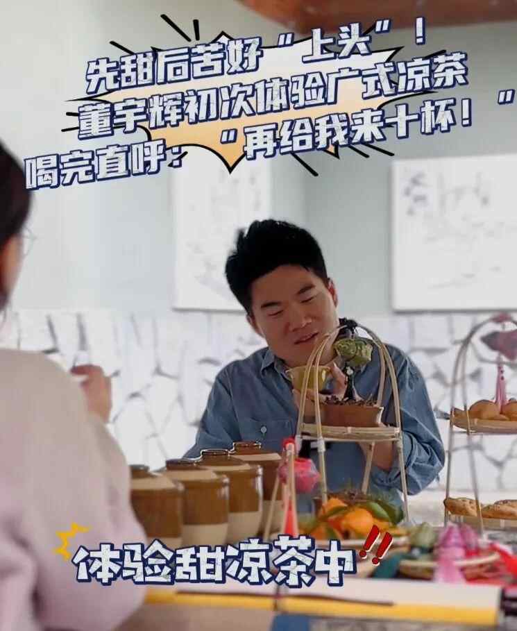 董宇辉初次体验广式凉茶(广东文旅视频截图)