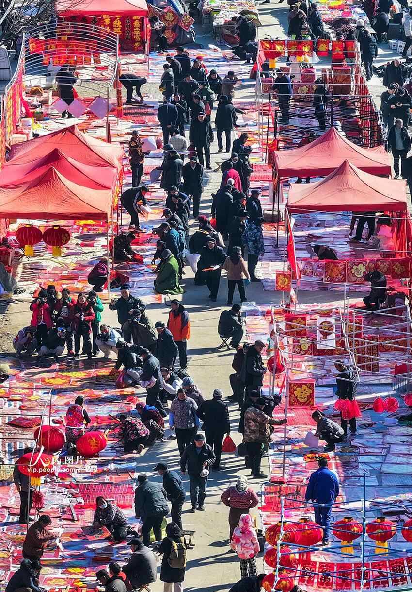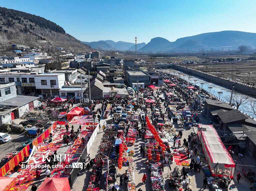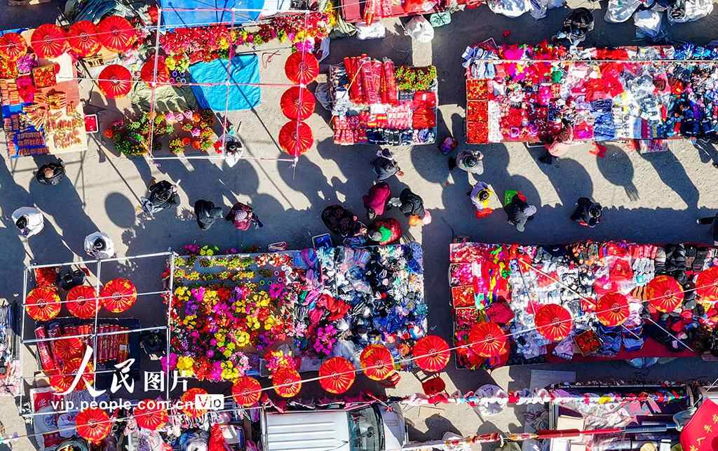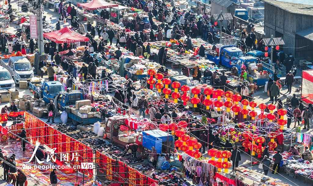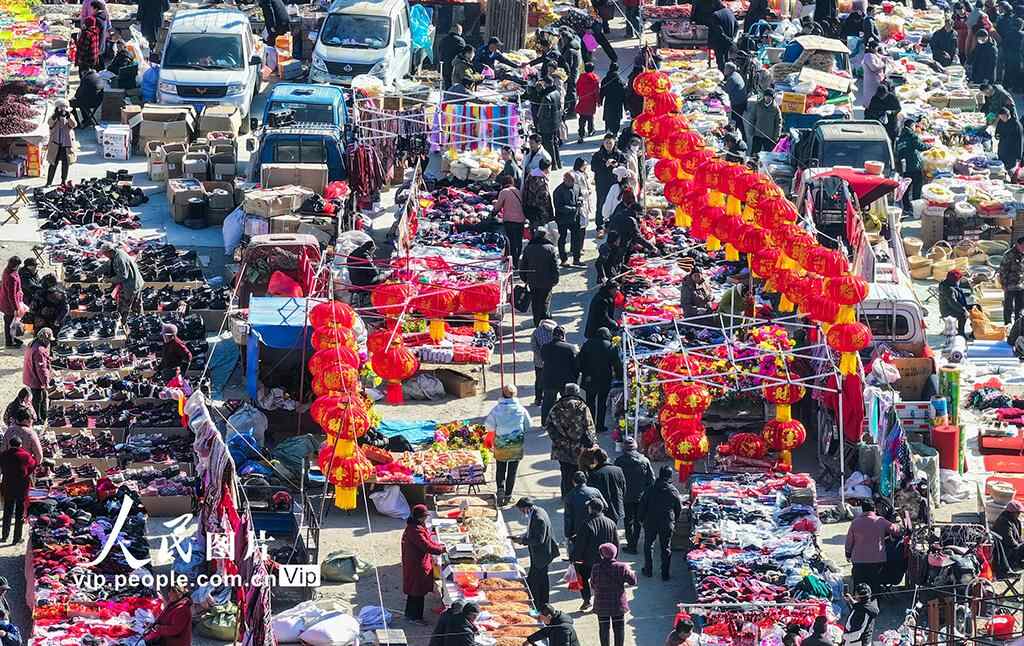 随着春节的日益临近,山东省枣庄市山亭区徐庄年集热闹起来,前来逛年集、购置年货的村民们络绎不绝,热闹非凡。洪晓东摄(人民图片网)