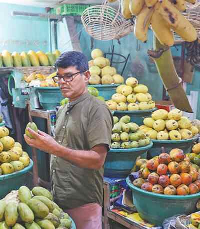 科伦坡市中心水果市场,当地居民正在选购新鲜水果。