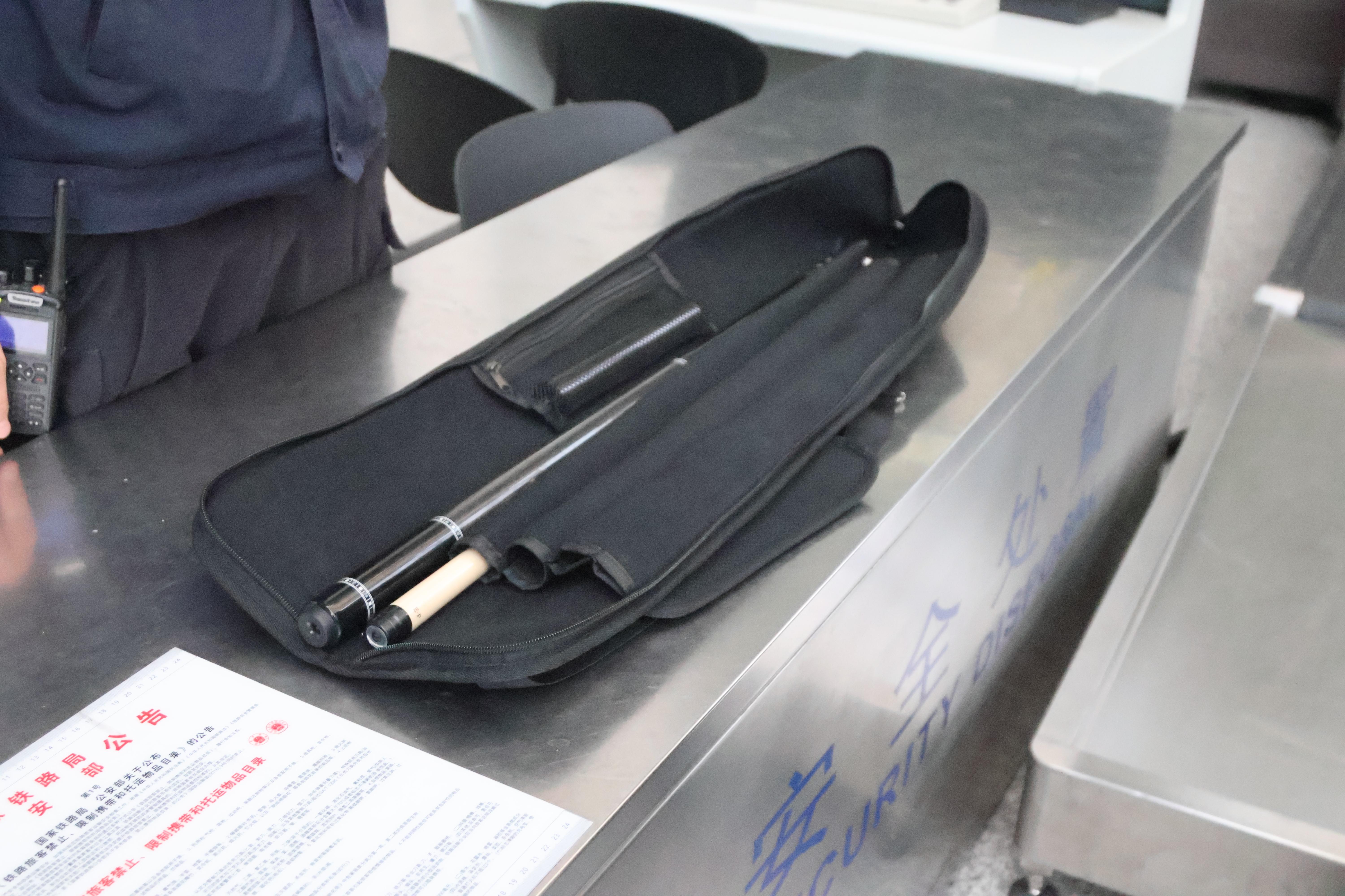 除易燃易爆物品和刀具外,还有一些特殊规格的体育器材也不能带上车。1月16日上午,旅客齐先生因携带台球杆被车站安检员拦下。“已经拆卸装盒的台球杆也不能带吗?”齐先生表示自己是台球爱好者,过年想带回家和朋友一起打球,之前不知道不能随身带上高铁。此时,排在齐先生后面过安检的旅客李先生携带的小型弹弓也被安检员告知进站不能随身携带。民警向记者介绍,台球杆、弹弓属于禁止随身携带但可以托运物品中的“其他类”。除此之外,球棒、曲棍球杆、锯子、耙、焊枪、飞镖等常见物品,根据规定都是禁止随身携带但可以托运的物品。