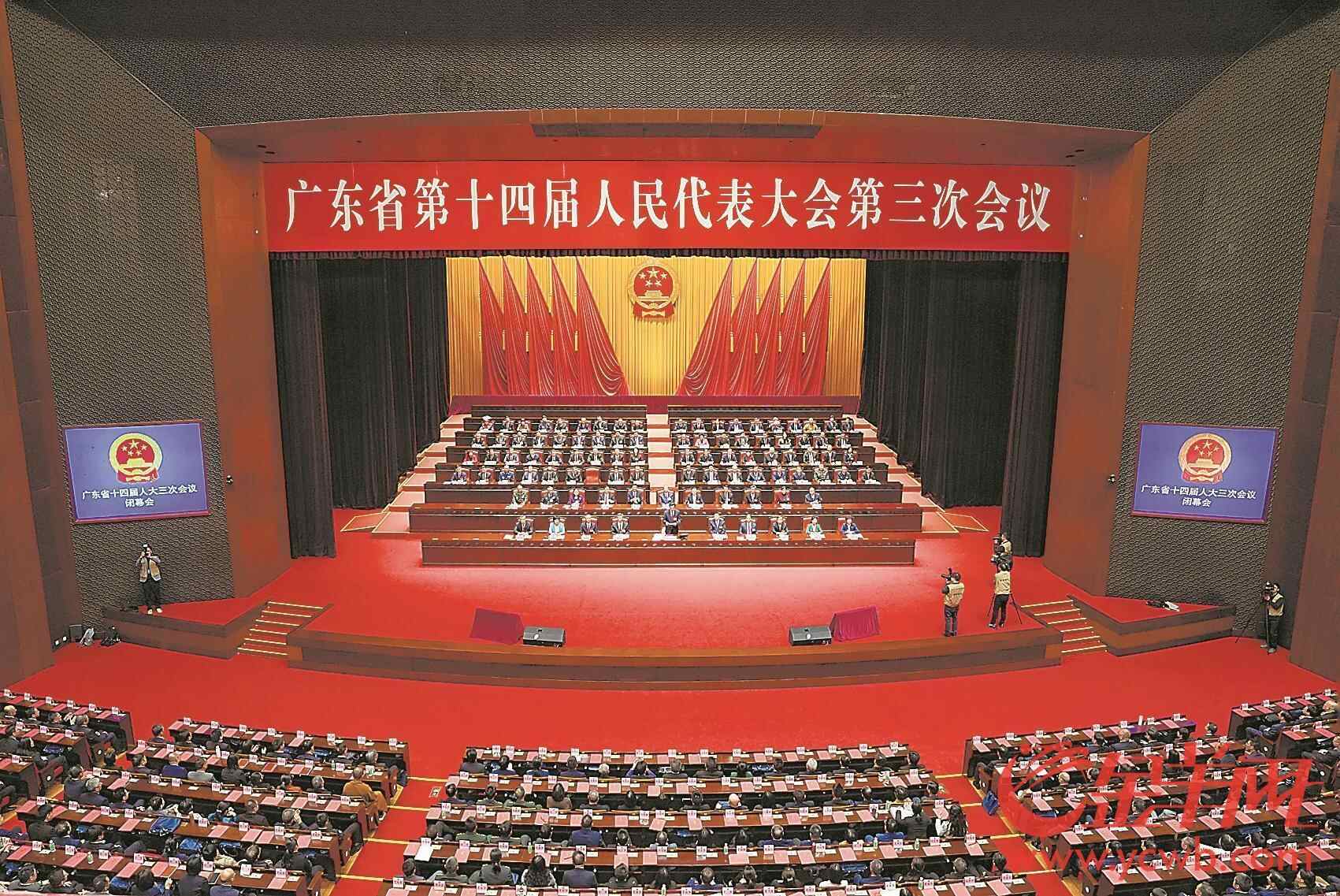 羊城晚报讯 记者侯梦菲、通讯员任宣报道:1月18日上午,广东省第十四届人民代表大会第三次会议圆满完成各项议程,在广州胜利闭幕。大会号召,全省人民要更加紧密地团结在以习近平同志为核心的党中央周围,高举中国特色社会主义伟大旗帜,在省委的正确领导下,务实肯干、埋头苦干、真抓实干,为广东在推进中国式现代化建设中走在前列作出新的更大贡献!