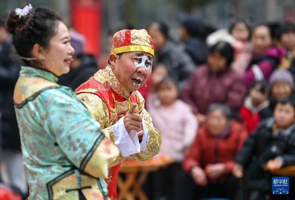 1月17日,在四川省南充市蓬安县相如街道凤凰山社区,文化志愿者在为群众表演川剧折子戏。