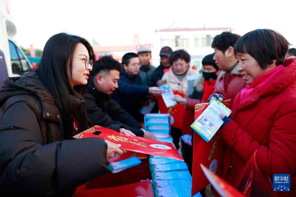 1月17日,江苏省兴化市文化科技卫生“三下乡”集中服务活动走进兴化市中堡镇,兴化市司法局工作人员为群众送上新春饰品。