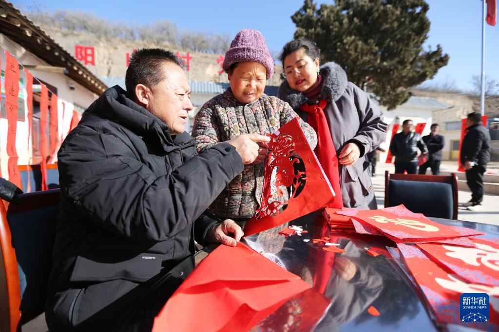 1月18日,剪纸艺人在甘肃省定西市安定区巉口镇阳山村为当地村民现场剪窗花。