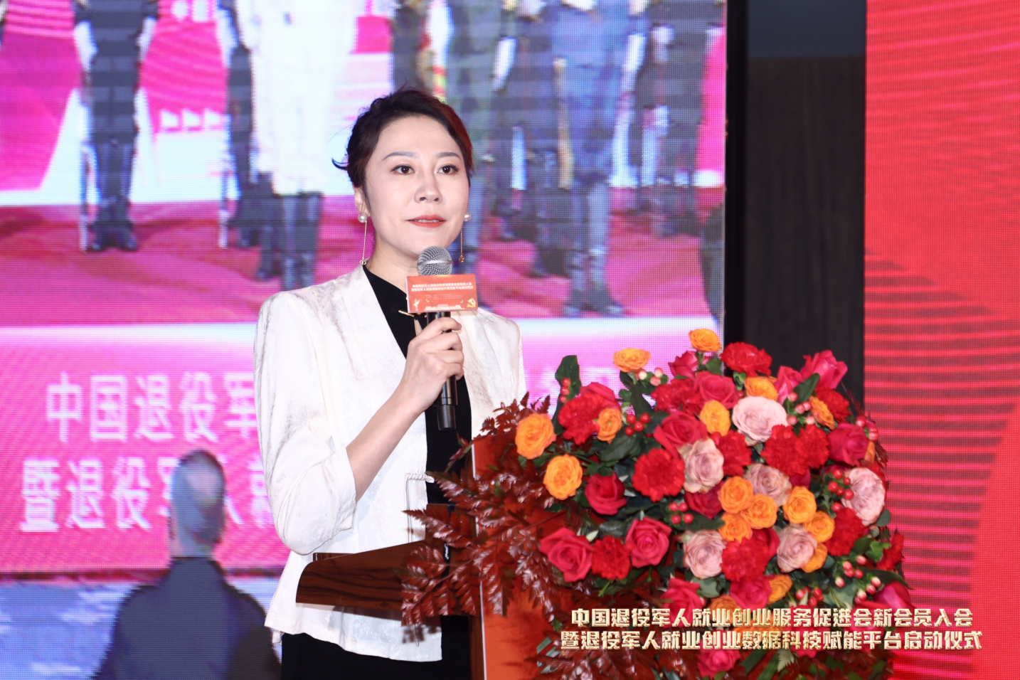 中国退役军人就业创业服务促进会数据科技赋能平台负责人郭彩云主持会议