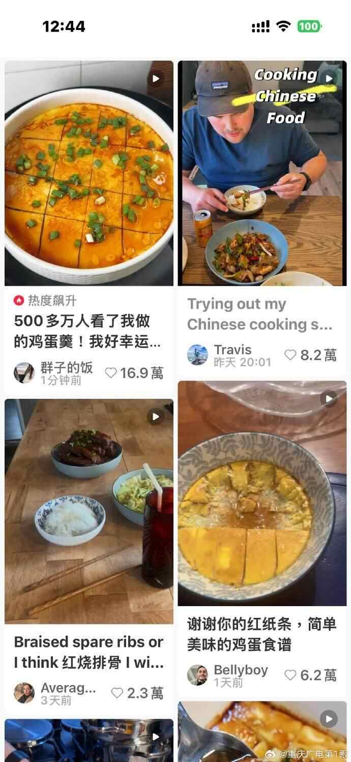 除了种菜,涌入中国小红书的美国网友们还学到了非常多技能,尤其是做中国菜,鸡蛋羹、做面食……大批中国网友“在线教学”。热情的中国美食博主也贴心地发布中英文双语视频教程,教外国网友厨艺。