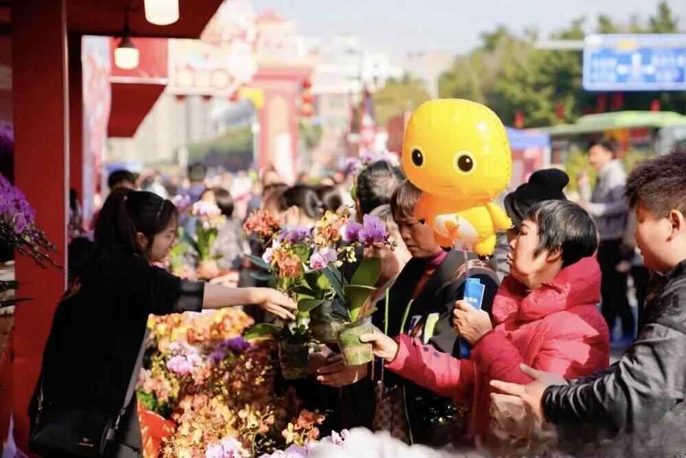 现场看到,火红的主色调、喜庆的音乐……不少街坊都早早来到花市寻找“年味”。财神巡游也是本次花市一大看点。作为大岗镇岭东村的特色民俗活动,“财神”手提装满糖果和大岗文旅主题红包的花篮为街坊派送福气,为花市增添喜气。