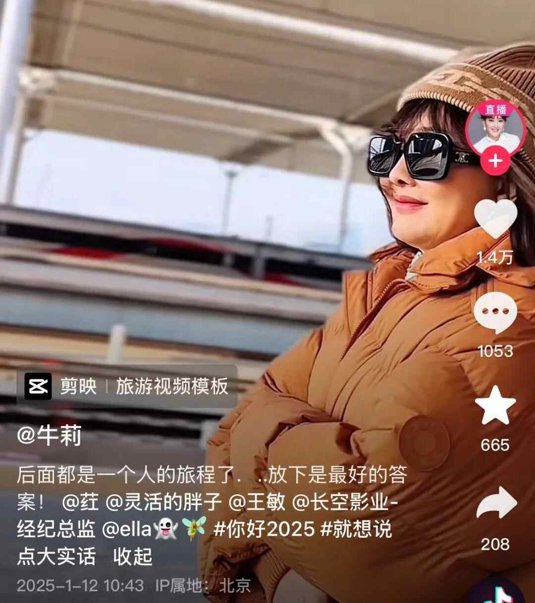 近日,51岁的女演员牛莉在社交媒体发布视频,她在动态中写道:“后面都是一个人的旅程了,放下就是最好的答案。”她还发布了自己独自等车的照片。