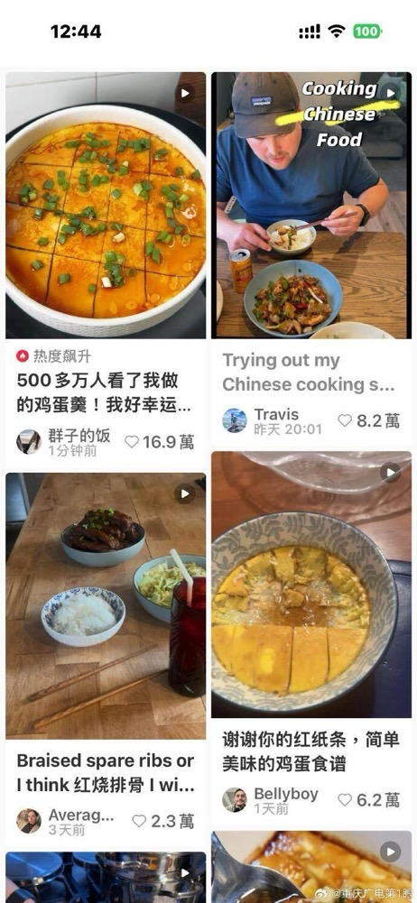 除了种菜,涌入中国小红书的美国网友们还学到了非常多技能,尤其是做中国菜,鸡蛋羹、面食……大批中国网友“在线教学”。热情的中国美食博主也贴心地发布中英文双语视频教程,教外国网友厨艺。