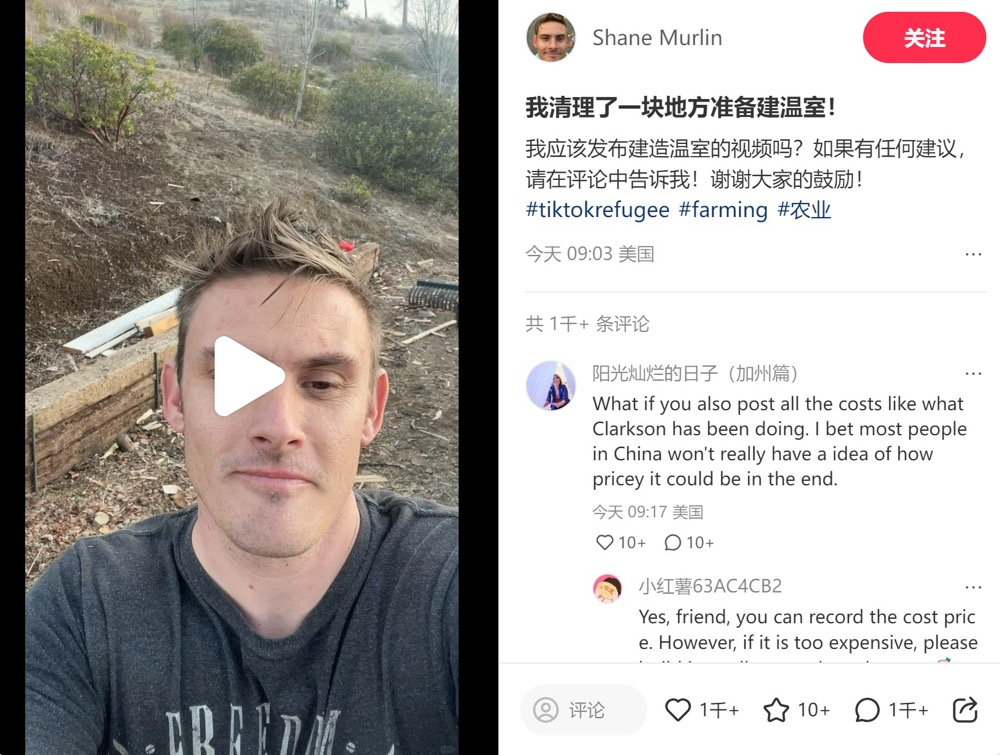1月18日,美国俄勒冈州网友发视频称,屋前屋后都有10英亩的空地,他决定听从中国网友的劝告,在这里尝试搭大棚种菜。