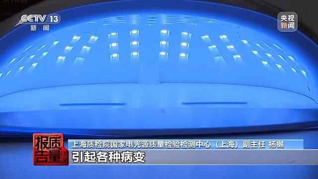 上海质检院国家电光源质量检验检测中心(上海)副主任杨樾:紫外光不能溢出到美甲灯这个设备以外,那也就是说这个制造商,必须保证所有的光都封闭在这个装置里面,这个美甲灯很多都是没有防护措施的,你会看到它里面的一些光溢出,这个溢出对眼睛的伤害是更大的。