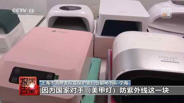 上海市消费者权益保护委员会副秘书长 宁海:要求企业积极进行整改,把不合格的产品进行下架,我们也抄告了相关的行政主管部门,希望引起部门重视,因为国家对于美甲灯防紫外线这一块,目前并没有相关的强制性的产品标准。