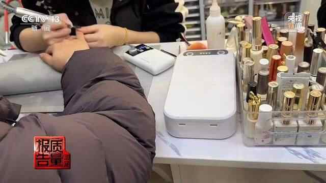 上海市消费者权益保护委员会消费指导部主任 蔡恩:很多消费者反映,他们在美甲的过程中指甲发生了变脆、断裂,甚至有一些皮肤变黑的情况。鉴于这个情况,我们对这个行业进行了深入了解和调查。最后,我们聚焦于美甲灯这个产品可能存在相应的质量隐患。