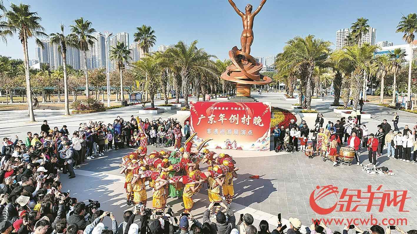 羊城晚报全媒体记者余胜容,实习生苏文苑、杨怡雯摄影报道:民俗表演极具特色,非遗巡演热闹非凡,精彩歌舞轮番上阵……1月18日,湛江“年例村晚”强势来袭,尽情分享来自祖国大陆最南端的喜悦。