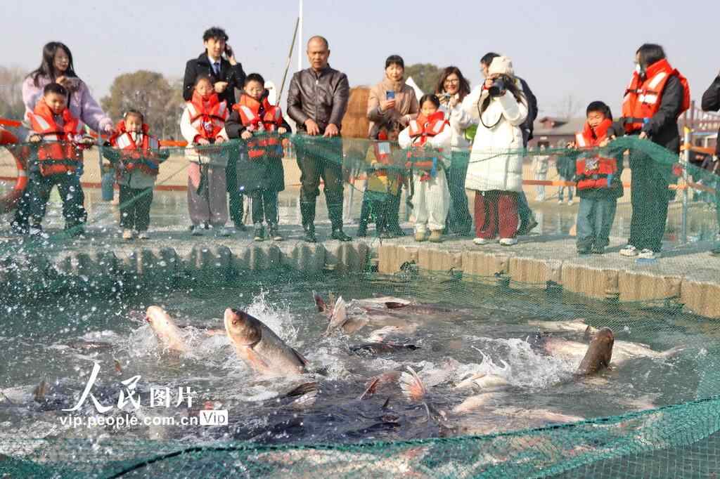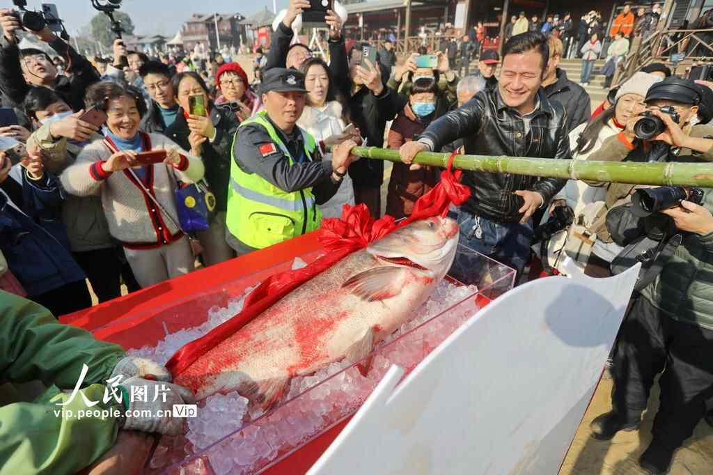 2025年1月19日,浙江省嘉兴市南湖区湘家荡“鱼乐美市”年货节启幕。非遗艺术展演、传统捕鱼技艺展示、鱼王拍卖以及年货大集开市等系列活动吸引了众多市民。金鹏摄(人民图片网)