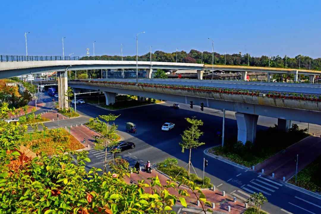 非涉铁段于2021年11月正式开工,历经三年攻坚克难,如今已基本实现新街大道(工业大道交叉口)-新街大岭立交-雅源中路跨线桥-空铁大道(首期)立交的贯通。