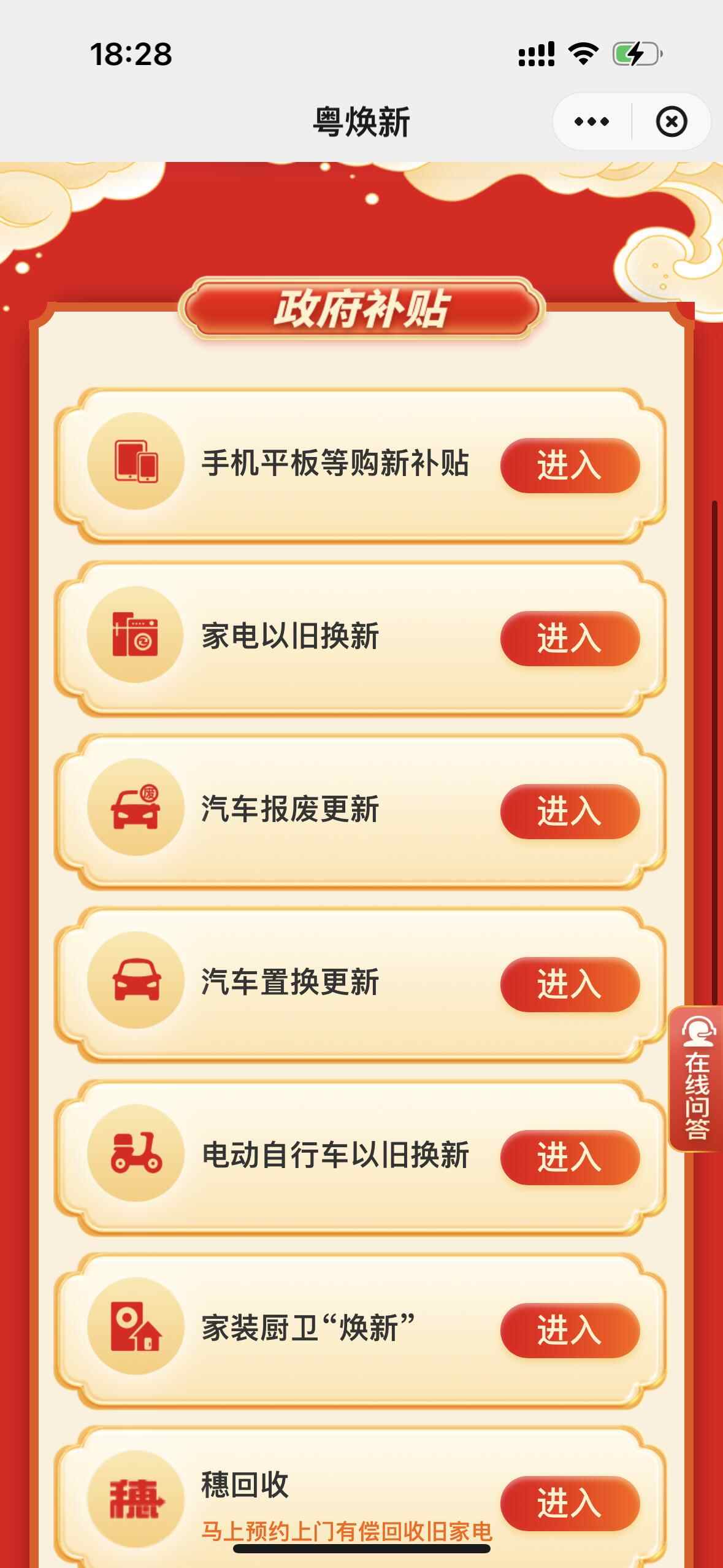 20日晚上6点,记者查阅“粤焕新”平台,定位广州,看到手机平板等购新补贴已经可以正常领取,新增的4类“国补”家电也已可以领取。扩围的13类家电产品暂时还无法领取,将会在1月20日后陆续上线。