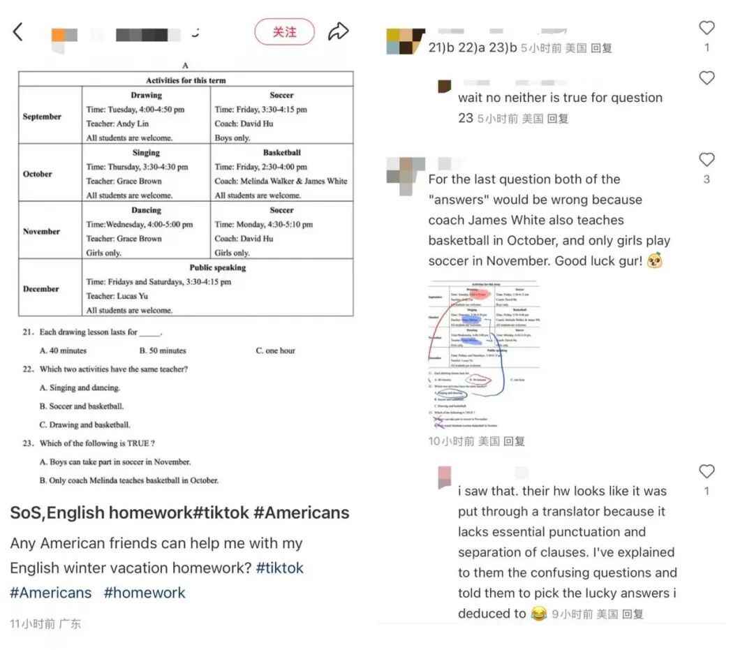 再如“作业帮”。一些中国的“大聪明”干脆把完形填空和阅读理解作业发上小红书,找美国网友帮忙做题,本以为找到了“免费的外教”,不料对方的正确率也没到100%;