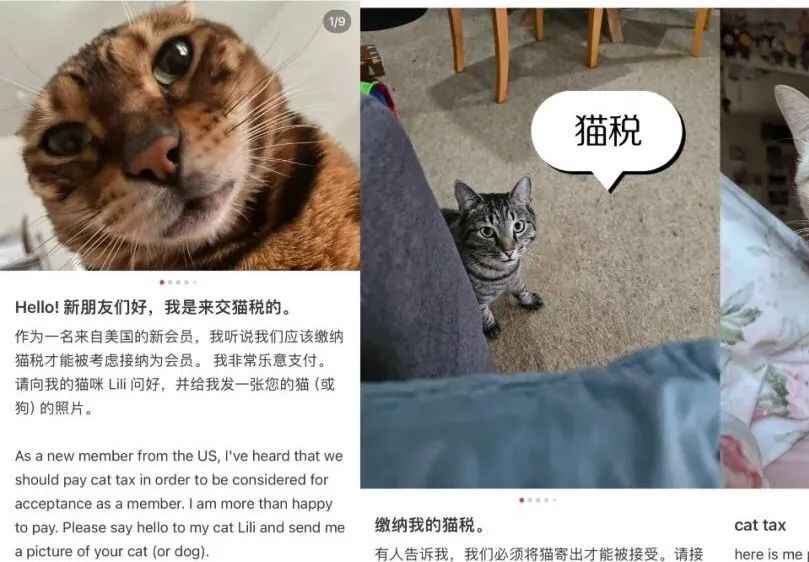 比如“缴纳猫税(pay cat tax)”。美国网友发帖打招呼时,会先用自家可爱猫咪的照片“破冰”,而中国网友也会在评论区“晒猫”回应,双方用萌宠达成“民间外交”;