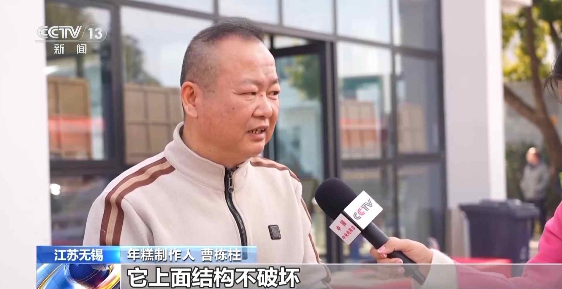年糕制作人 曹栋柱:年糕的黏性比较强,它上面结构不破坏,整个一个美观度就体现出来了。
