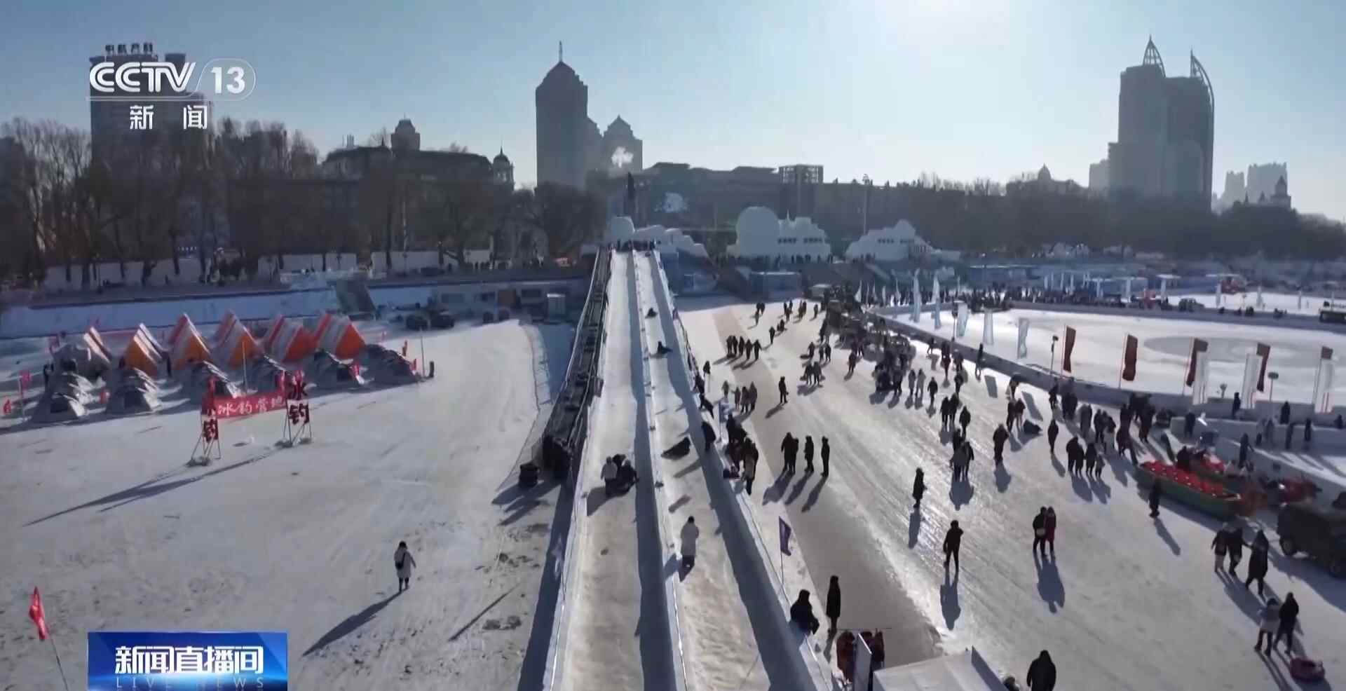 哈尔滨松花江冰雪嘉年华开发运营部部长 何礼:欢乐雪滑梯、超级冰滑梯,还有疯狂八爪鱼,还有旁边的雪圈极速漂移,这都是我们的明星项目,也是深受游客朋友喜爱的项目。