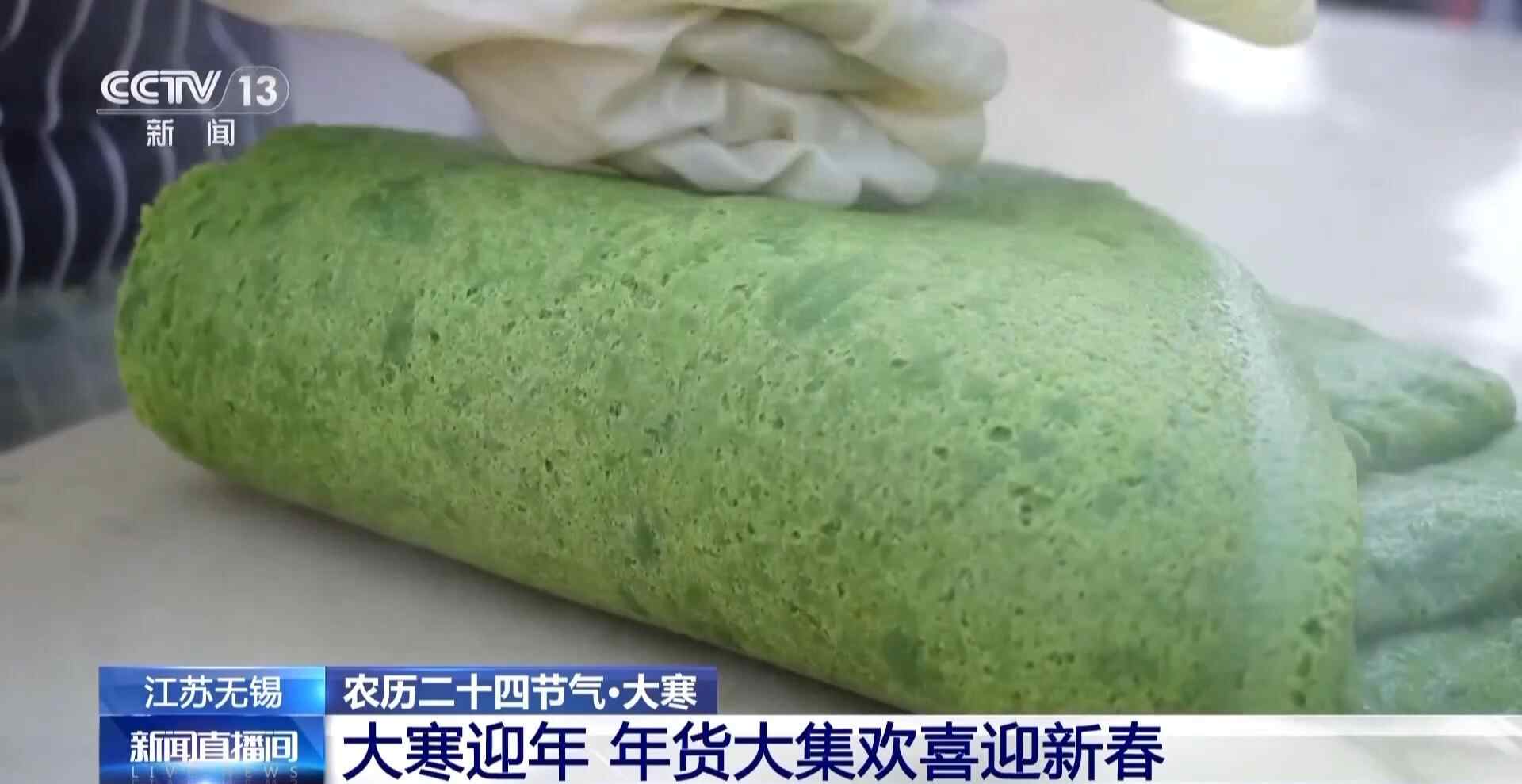 大寒节气,古时候江南一带有吃糯米制作的食物的习俗,称之为“食糯”。集市上,手艺人正在现场制作年糕,蒸开锅的糯米粉,氤氲的热气散发开来,在双手翻飞中,加了麦草汁的糯米粉很快变成一条条年糕,再用一条细细的棉线,轻轻一拉,快准狠,年糕就切好了。
