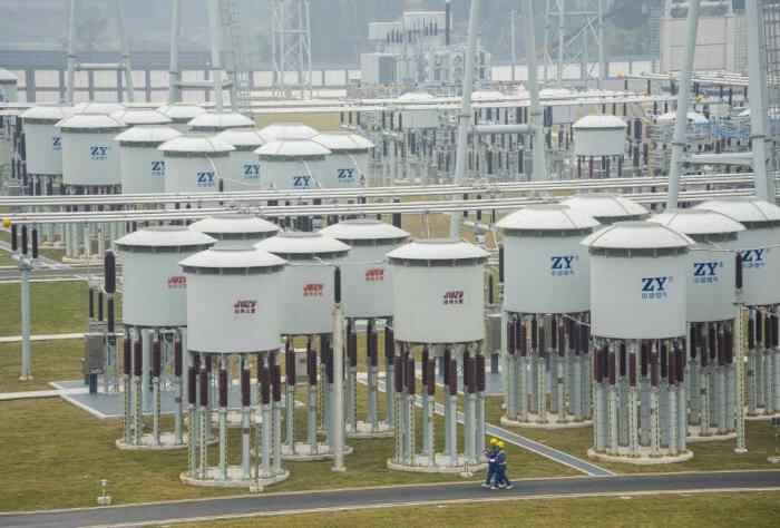 在川渝1000千伏特高压交流工程铜梁1000千伏变电站内,国网重庆超高压公司的运维人员对变电站设备进行人工巡视(2024年12月27日摄)。新华社记者刘潺摄