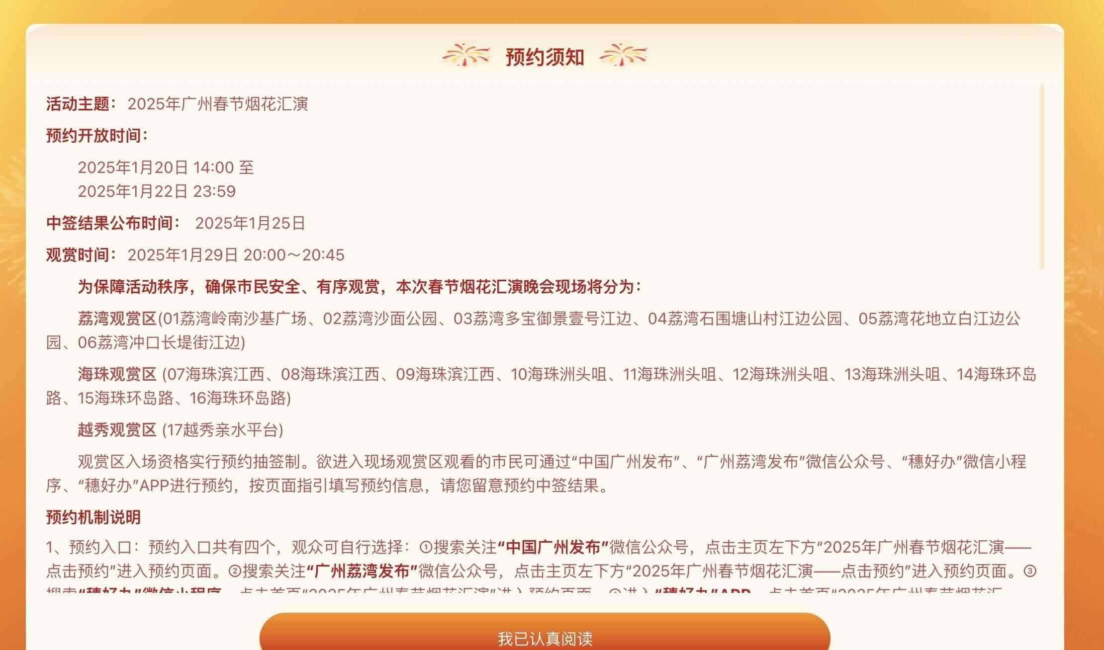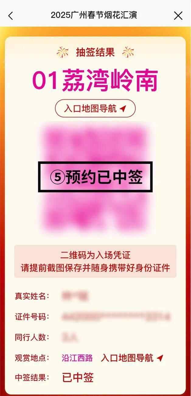 1️⃣ 本次春节烟花汇演观赏区入场资格实行预约单抽签机制。