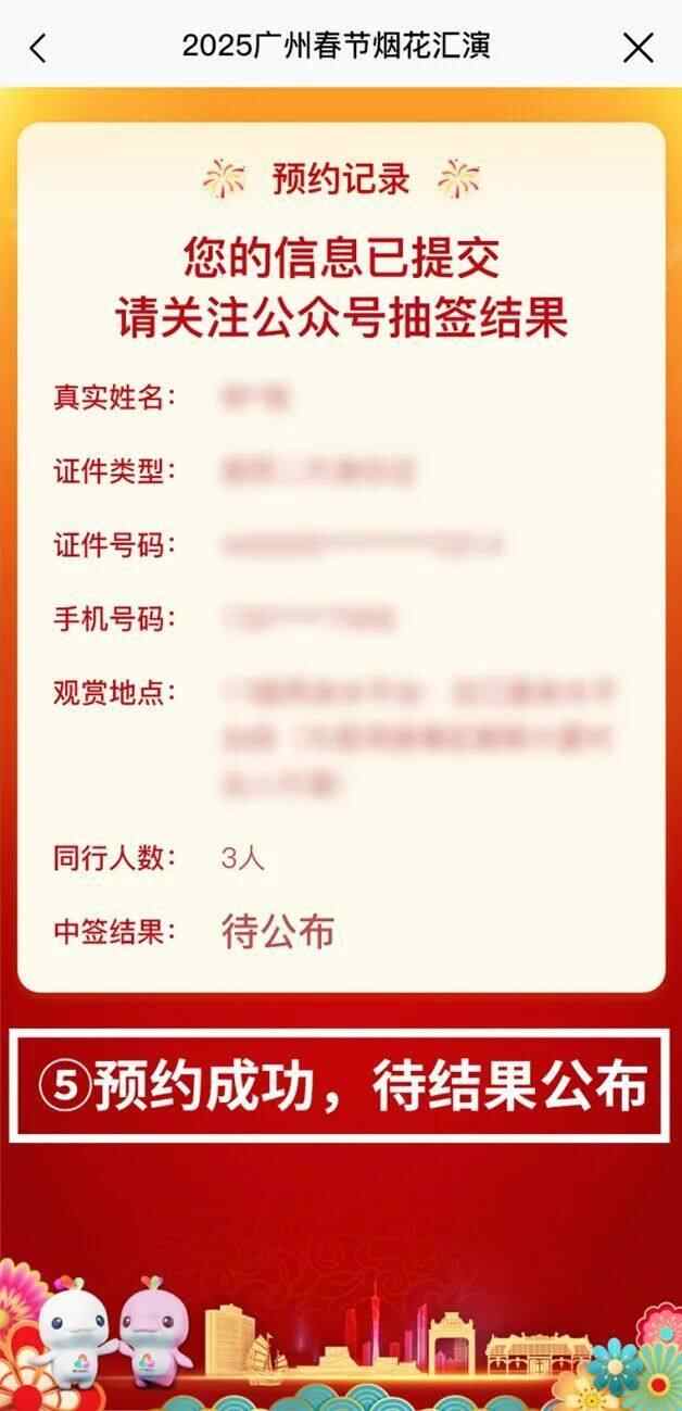 6️⃣预约信息提交成功,待抽签结果公布