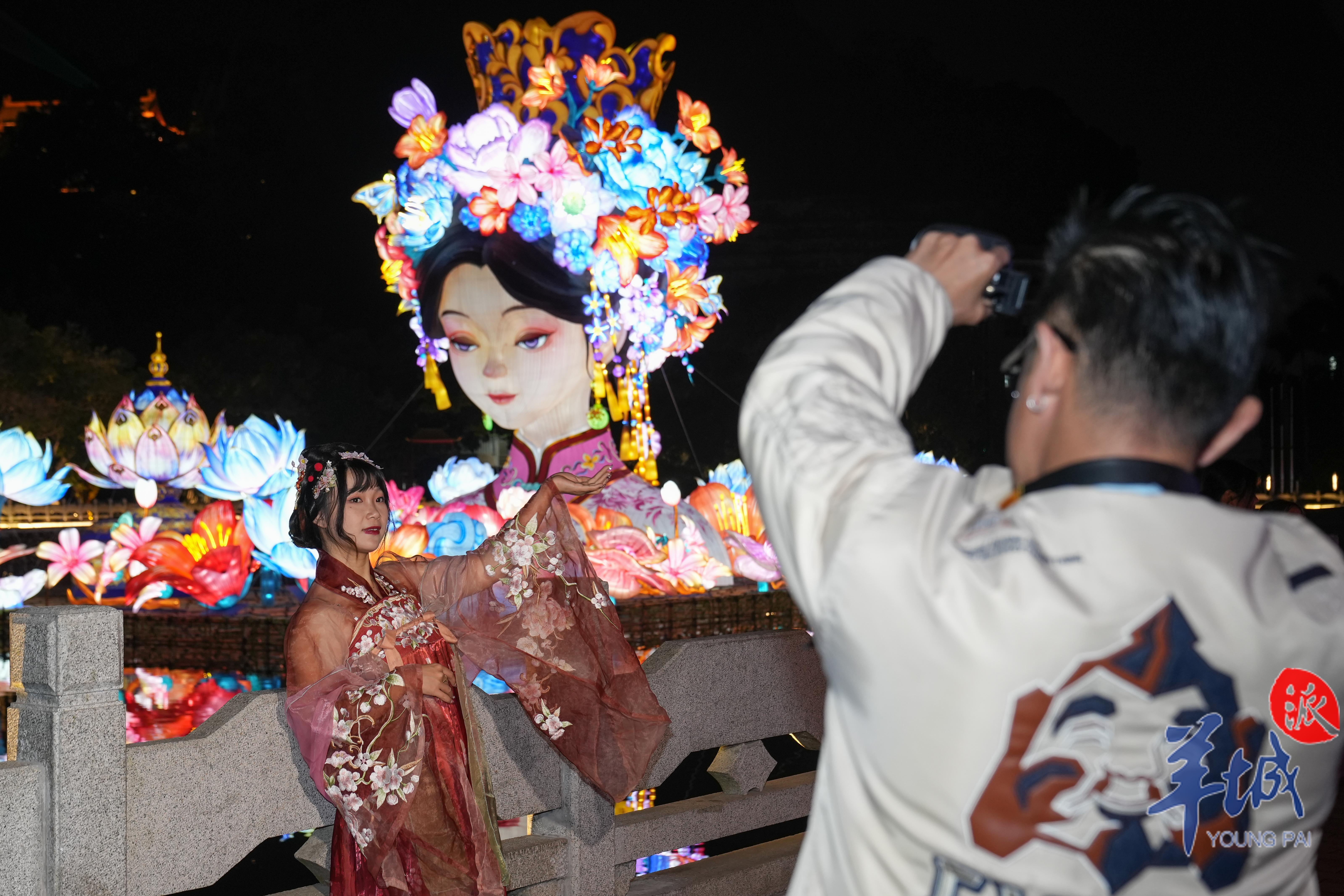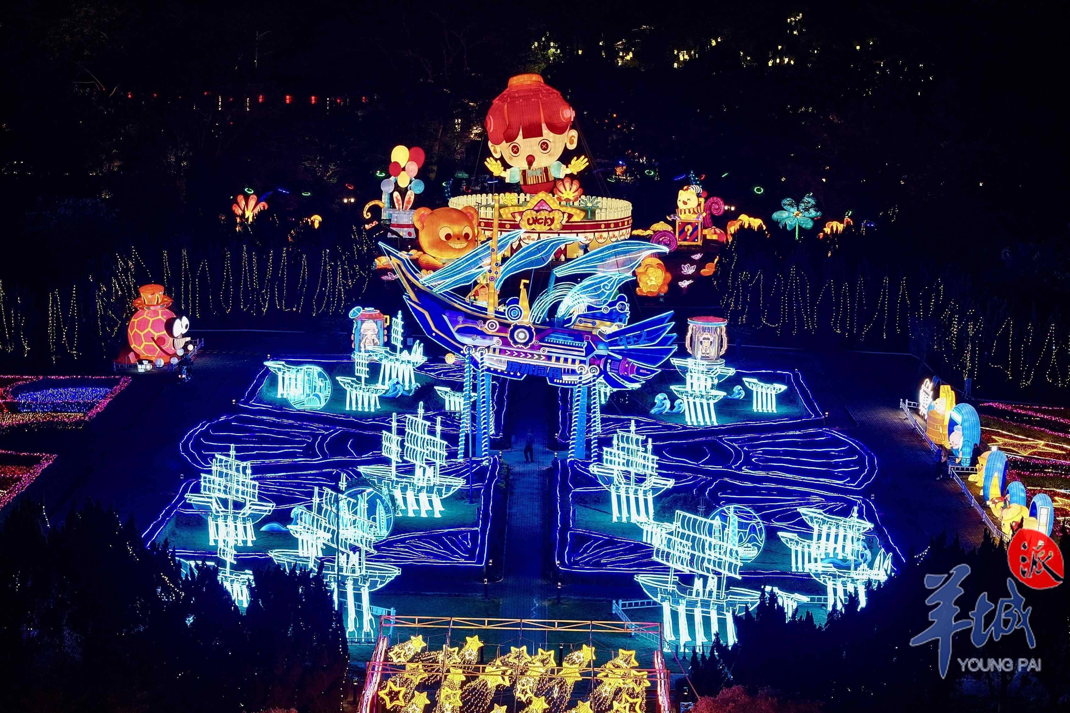记者现场看到,超大型天穹式的醒狮大门灯组,融合了年轻人喜欢的现代科技和赛博风格,巨物和动态的视觉效果前所未有;《齐天大圣》原创灯组结合当下“悟空热”,为游客带来别开生面的光影艺术互动体验;《来K歌》潮玩灯组塑造了极具广州特色的鸡蛋仔IP形象,游客可以现场点歌、K歌,重温不同年代的粤语金曲;《真心话大冒险》乐园灯组让孩子们在童梦奇园里,开启一段奇妙的冒险之旅……8组超大型彩灯、37组大型彩灯、173组中小型彩灯,为不同年龄层游客提供了丰富多样的游赏选择。