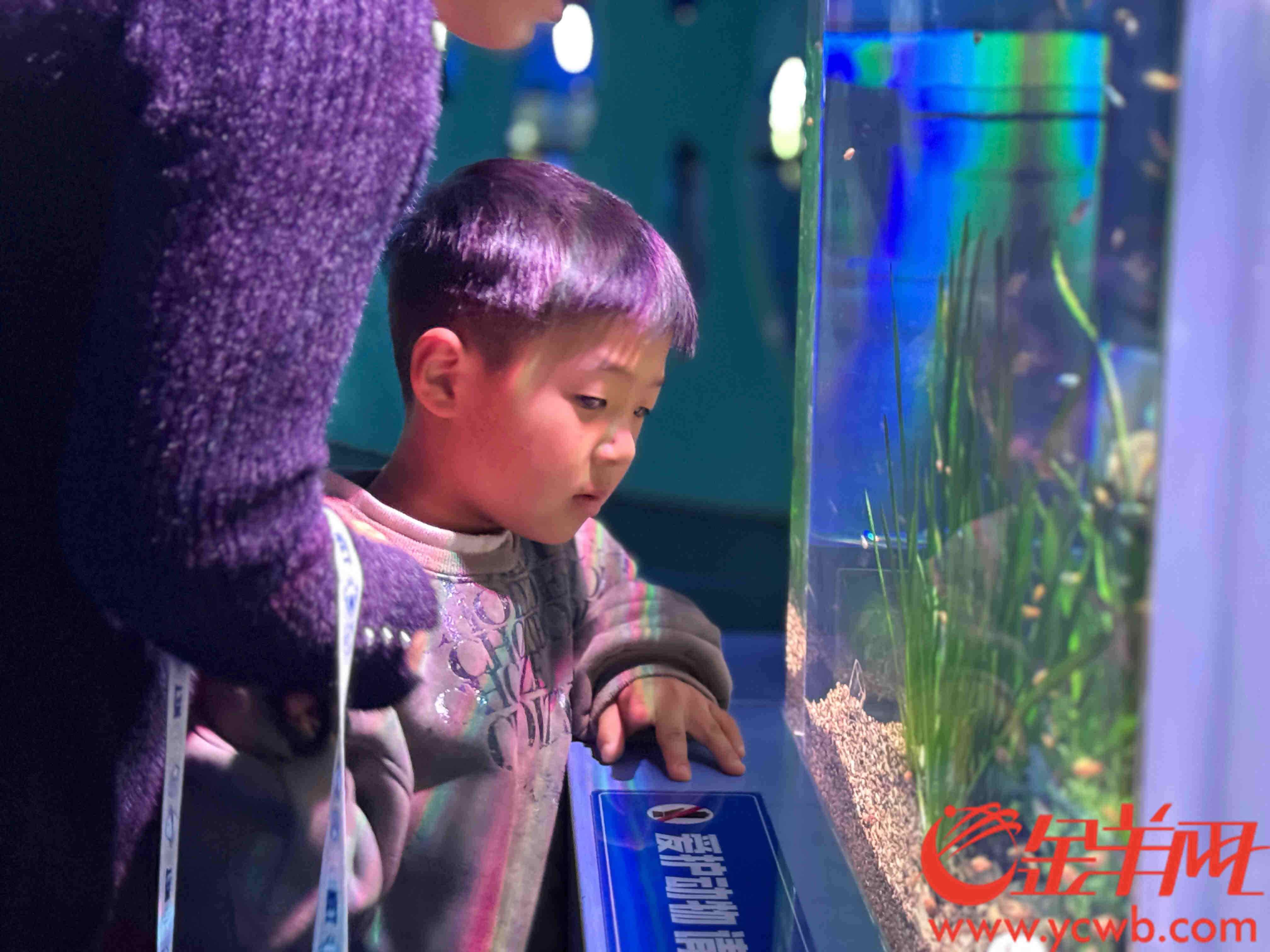 原生鱼爱好者冯建华听闻广州海洋馆珠江水系生态展区揭幕的消息,特意赶来参观。他感慨道,平时很少能看到如此系统展示珠江水系生态的展区,这对整个珠江流域水生生物资源的科普具有重要意义。“特别是对于孩子来说,能了解自己身边的河流山溪中,存在着这么多新奇有趣的生物,有助于激发他们对家乡的热爱。”冯建华说。
