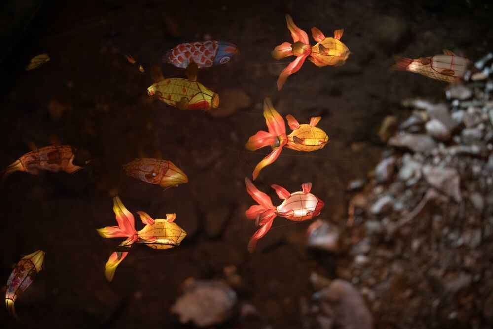 这是1月10日在安徽省黄山市歙县北岸镇瞻淇村拍摄的鱼灯倒影。