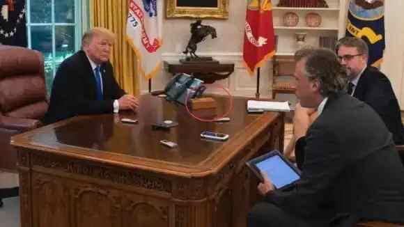 2021年,随着特朗普的离开,红色按钮曾短暂地被移除,不过之后又回到了坚毅桌上,就放在拜登的电话旁,特朗普之前也将其放在同样的位置。