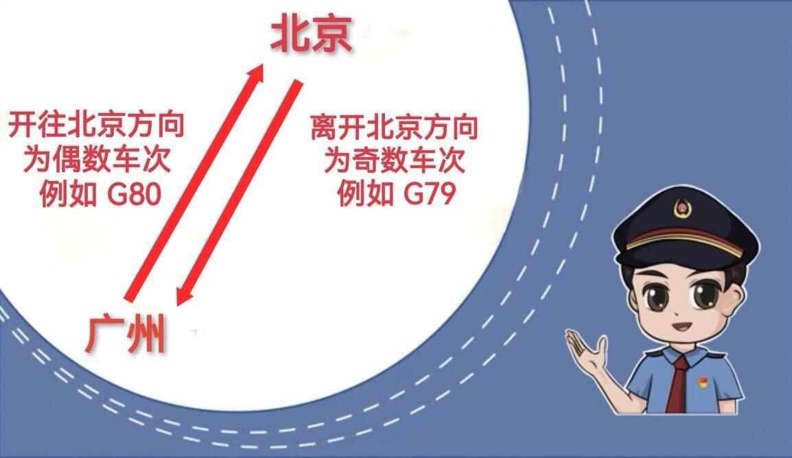为了更好地认识“折角车次”,首先要知道什么是铁路的“上行”和“下行”。根据铁路部门规定,开往北京方向或者从支线开往干线的列车为“上行”,车次数字是双数;离开北京方向或从干线开往支线的列车为“下行”,车次数字是单数。例如,香港西九龙站到北京西站列车是向着北京方向开行,为“上行”,其车次用的是G80次,反向则为“下行”,车次变更为G79次。