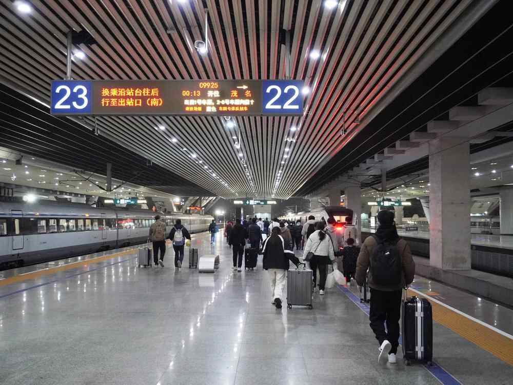 1月21日0时13分,由广州南站开往茂名的C9925次列车正点开出,这是广州南站2025年春运期间的首趟始发夜间高铁,也标志着“通宵”模式正式开启。