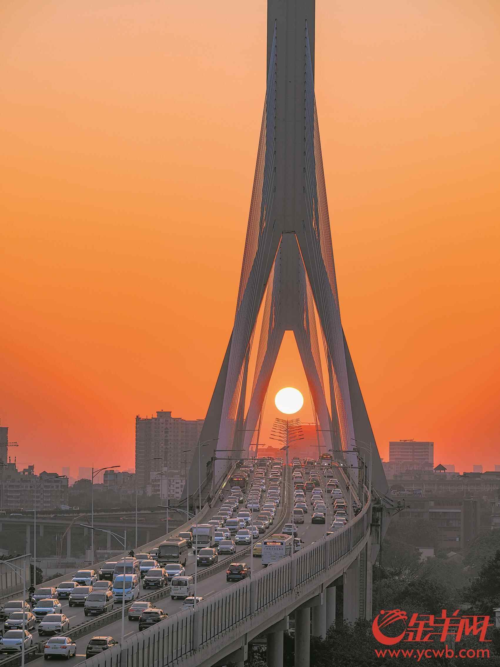 回家路上,即使是川流不息的车流形成了一条壮观的“长龙”,让回家的路变得有点漫长,但当落日余晖如一条流淌着金黄色光芒的河流蜿蜒在归途中时,这轮红日就成了一份珍贵的礼物,让漫漫的归家路“染上”了温馨的光芒。