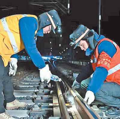 国铁成都局工作人员在试验川青铁路道岔融雪装置。张根千摄