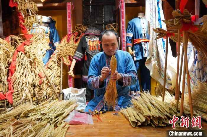 1月21日,广西贺州市富川瑶族自治县连山镇上莲塘村,陈氏扎龙技艺第六代传承人,自治区级非物质文化遗产项目《富川平地瑶扎龙技艺》的市级传承人陈初敏正为春节制作草龙。近年来,随着当地文旅的发展,陈初敏创新制作的草龙受到游客欢迎,进入多个景区售卖,2024年卖出数千只。中新社记者 王以照 摄