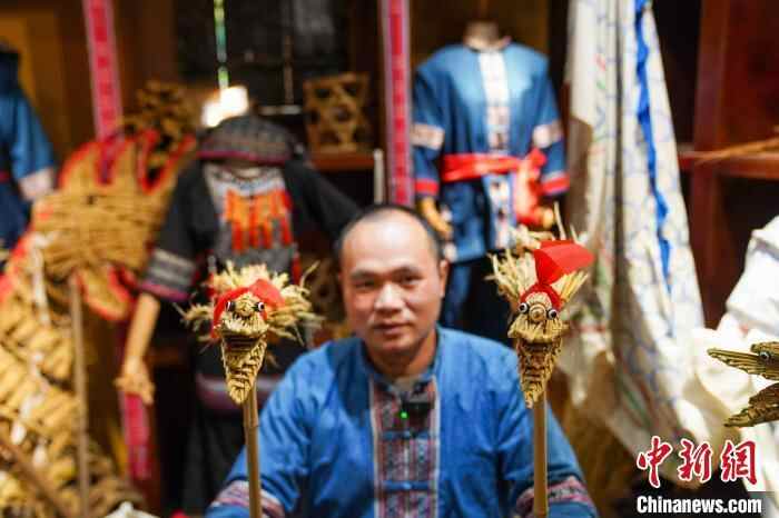 1月21日,广西贺州市富川瑶族自治县连山镇上莲塘村,陈氏扎龙技艺第六代传承人,自治区级非物质文化遗产项目《富川平地瑶扎龙技艺》的市级传承人陈初敏展示他为春节制作的草龙。近年来,随着当地文旅的发展,陈初敏创新制作的草龙受到游客欢迎,进入多个景区售卖,2024年卖出数千只。中新社记者 王以照 摄