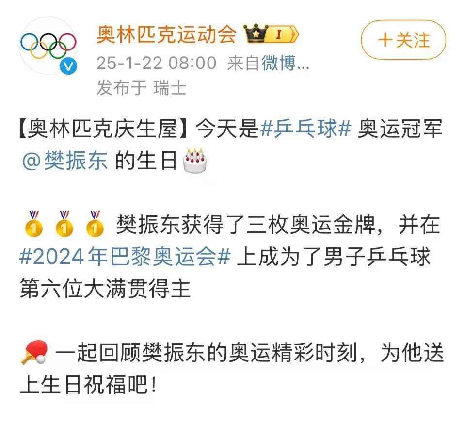 在生日这样的时间节点上,樊振东也更新了自己的社交媒体。除了分享看球日常,他还转发了此前自己针对饭圈的声明,再次呼吁球迷远离饭圈的戾气。
