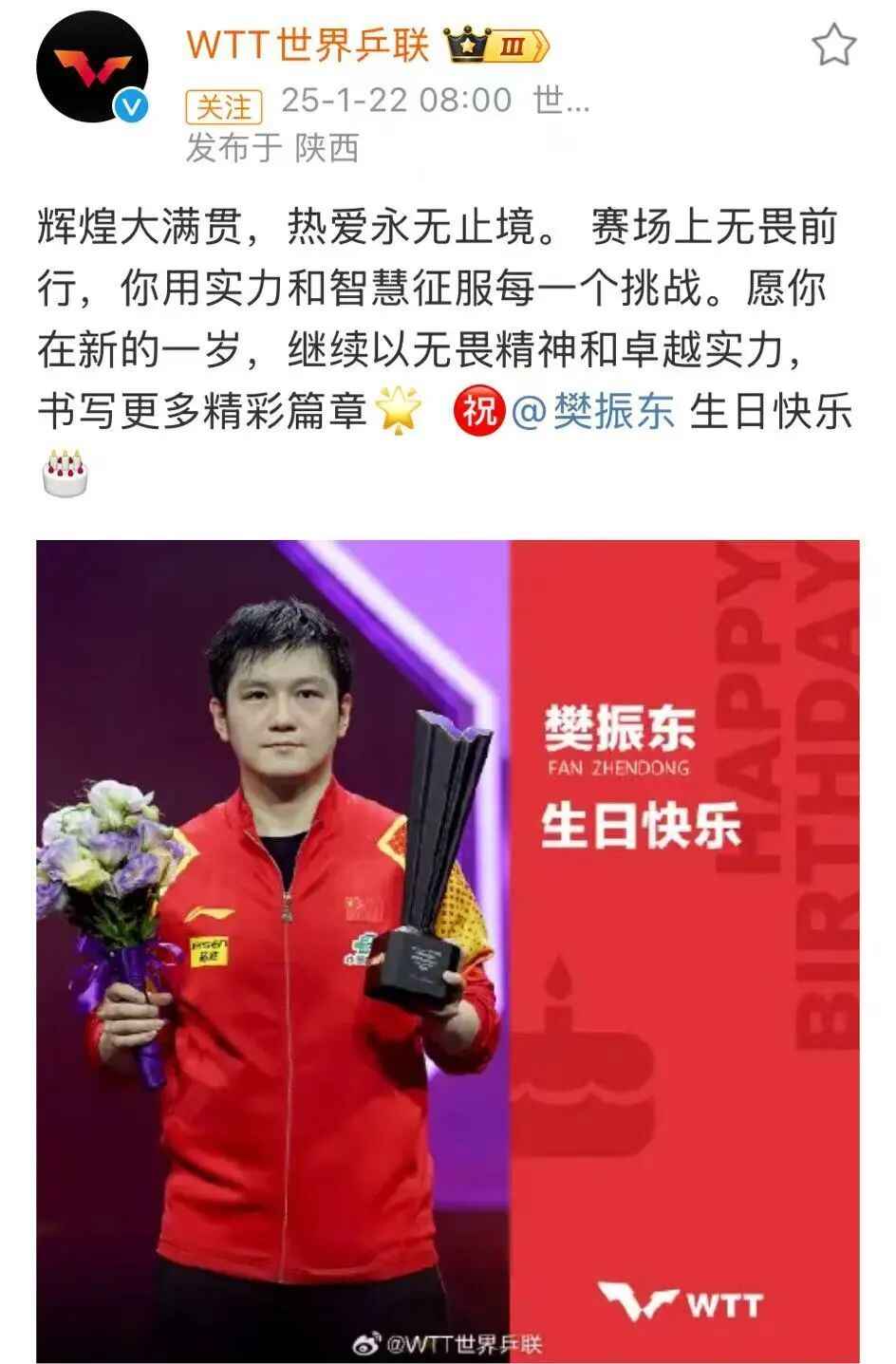 今天是奥运冠军樊振东的28岁生日,WTT世界乒联、奥林匹克运动会官方、吴敬平教练等纷纷发文祝福。