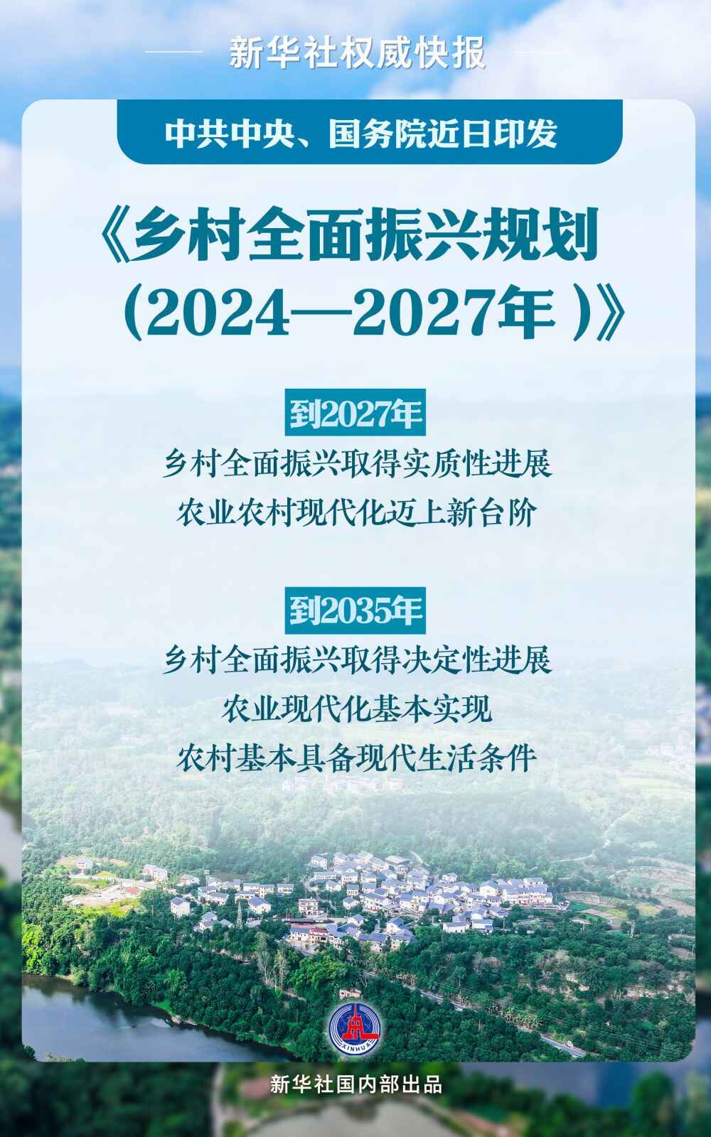 中共中央、国务院近日印发《乡村全面振兴规划(2024—2027年)》。