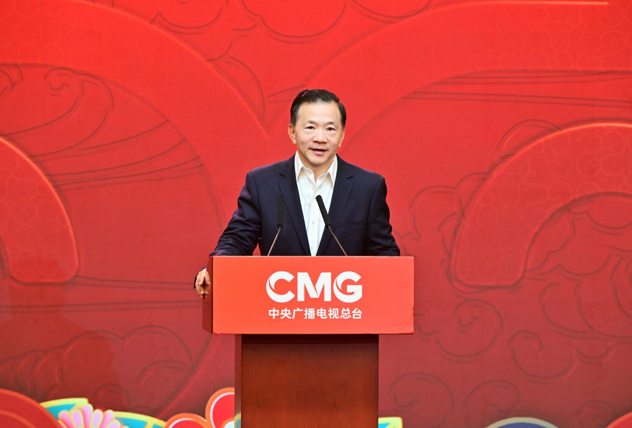 慎海雄在致辞中说,即将过去的甲辰龙年,是党和国家事业发展的重要一年,也是总台推进高质量发展的重要一年。习近平总书记对总台工作高度重视、寄予厚望,对总台“三农”宣传青年工作者的致信专门作出重要指示,给我们以鼓励、以指导、以期望。一年来,我们牢记习近平总书记殷切嘱托,坚定不移从习近平总书记重要思想、重要论述、重要指示中找启迪、找思路、找答案,推动“头条工程”提质升级、出新出彩,庆祝新中国成立75周年、党的二十届三中全会、庆祝澳门回归祖国25周年等重大主题宣传报道亮点纷呈。一年来,我们抢首发、争独家、敢亮剑,国际重大新闻首发率继续领先全球主流媒体。海外传播语种再上新,82个语种立体发声,创造国际主流媒体之最。“媒体外交”创新开拓新局面,总台在国际舆论场上的地位、分量、份额进一步跃升。一年来,我们持续深化高质量发展“三个转变”,“两个效益”双丰收的精品佳作持续喷涌,春节联欢晚会成为传播中华文化的“金名片”,巴黎奥运会转播报道刷新传播纪录,经营工作逆风飞扬、再创新高,“大作看总台”“大剧看总台”“大赛看总台”的“金字招牌”更加闪亮。一年来,我们以新质生产力引领总台高质量发展,总台的“四梁八柱”更加坚实牢固,超高清示范园“央视界”、国家(杭州)短视频基地、国际传媒港等重点项目提质升级,媒体科技实力巩固“国内最好、国际领先”地位。