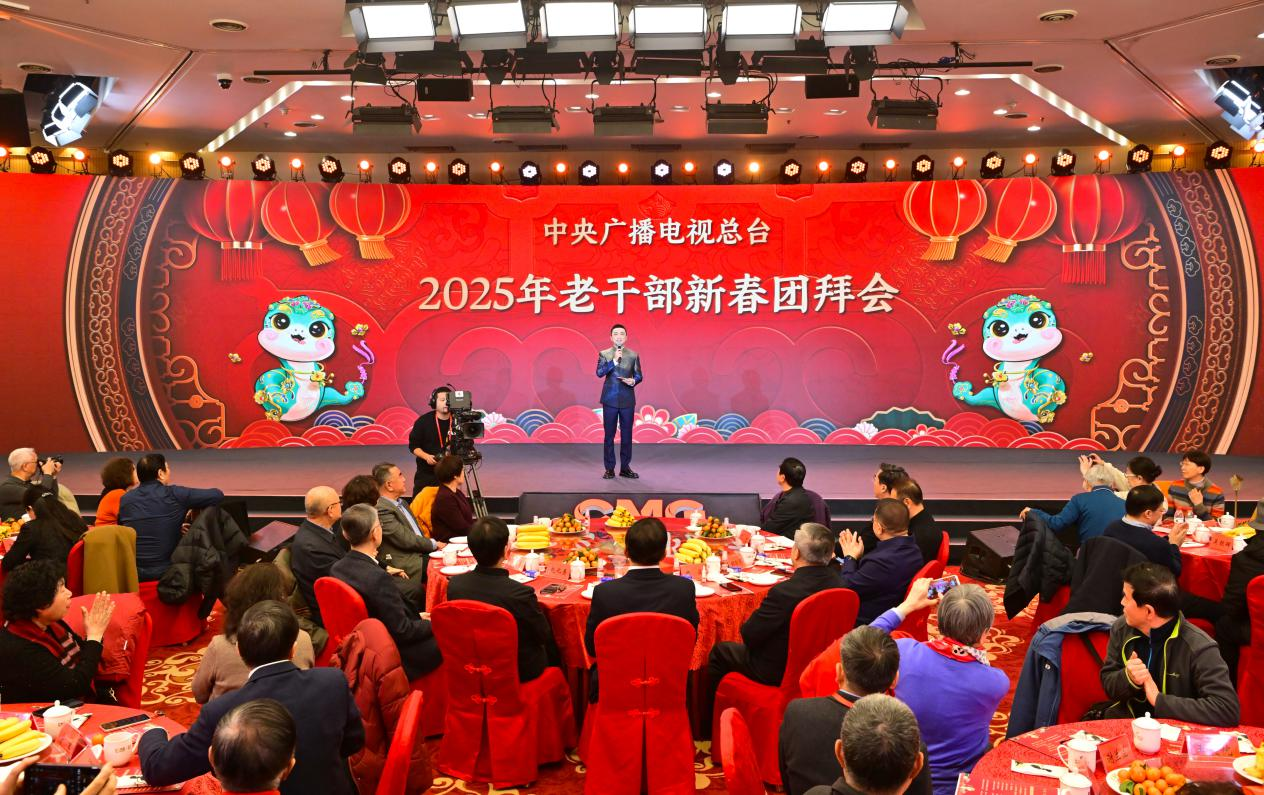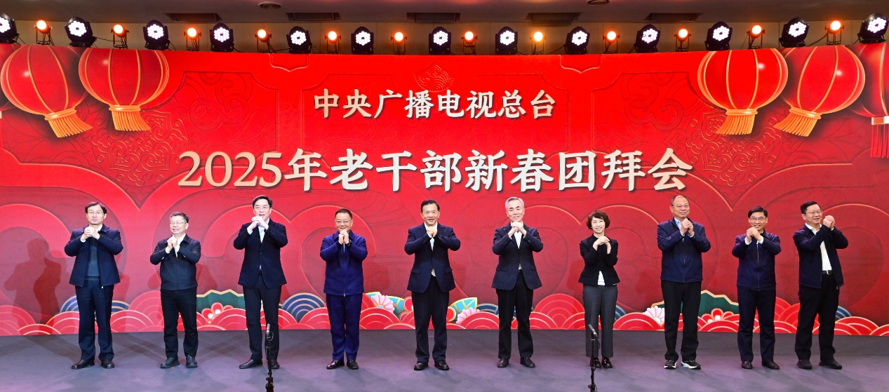 总台党组成员、编务会议成员、总会计师集体向老同志拜年,祝老同志新春快乐、阖家幸福、健康长寿。2025年春晚剧组和总台老年合唱团现场表演了精彩的文艺节目,共贺新春佳节。