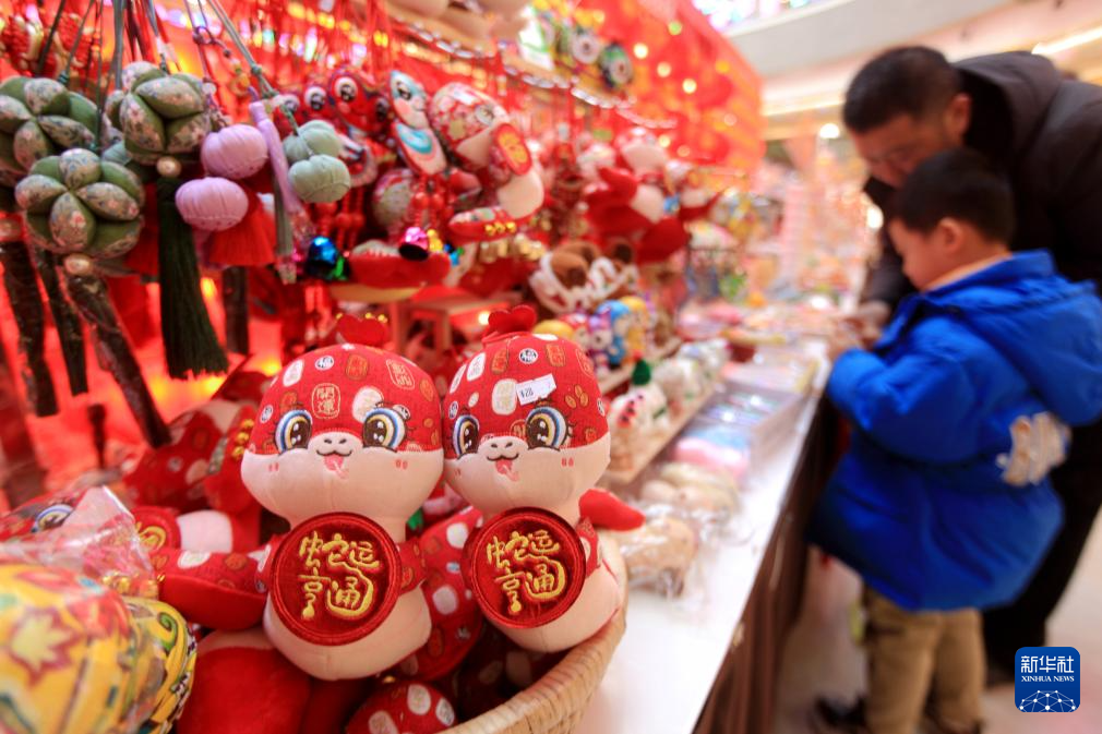 蛇年新春将至,人们选购各色年货,在浓浓年味中喜迎新春。