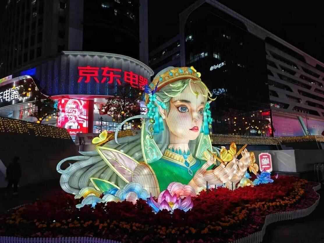 在表演结束之后,“潮聚福田”“点亮华强北”“爱深圳”“蝴蝶精灵”“智造新纪元”“科技潮礼”“花漾四溢”“月影鲸游”被同时点亮,瞬间将华强北街区装点得如梦似幻。每组花灯都蕴含着独特的设计构思和深厚的文化底蕴,从传统的生肖形象到现代的艺术创意,既体现了对古老技艺的传承,也展现了艺术家们的创新精神,更体现了深圳创新包容、海纳百川的城市品格。