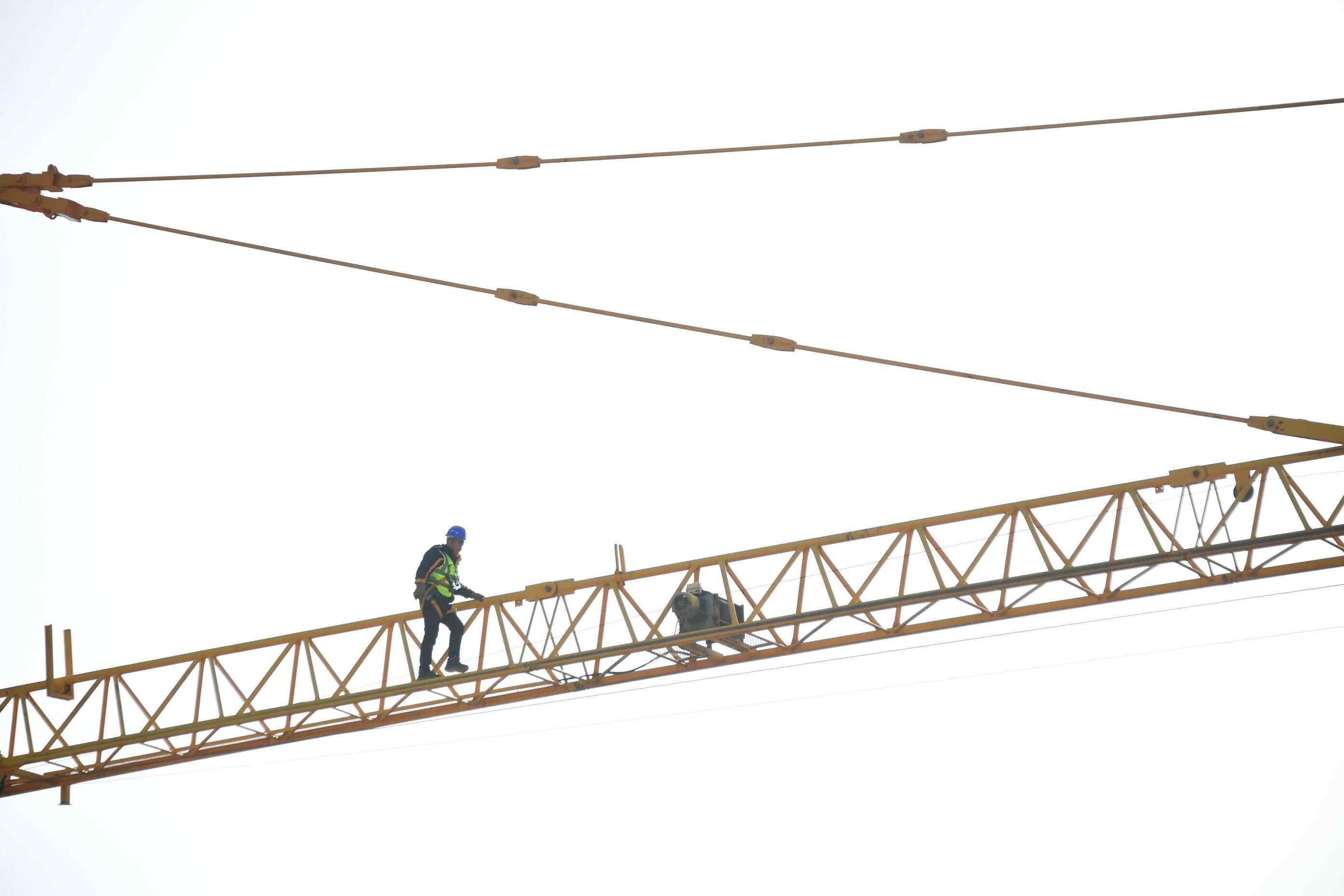 塔吊安装还有一大忌讳,那就是风。吴立成每天都会关注天气预报,查看风力级别。“下点小雨我们最多只是衣服淋湿,不要紧,但是有风就很危险。大风中,起重臂会产生非常大的扭矩力,严重时会发生倾覆。”他解释道。