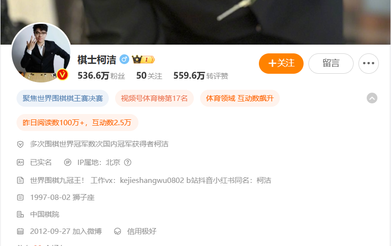 值得注意的是,1月23日晚,柯洁的微博简介改为“世界围棋九冠王”,疑似回应1月23日的比赛结果。