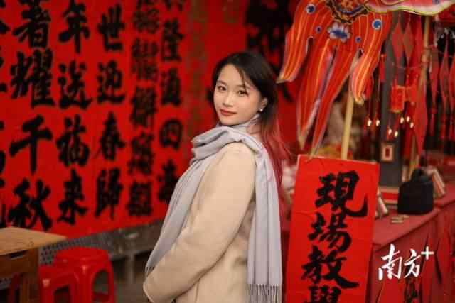 祖庙快子路,每年春节前夕便会化身为挥春街。长街之上,古朴骑楼红纸飘舞、墨香四溢,艺术家们现场挥毫写下龙飞凤舞的新春祝福,挥春师傅手把手教学,往来游客还可亲身体验手写福字、对联。